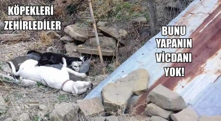 Köpeklerinin zehirlenerek öldürüldüklerini iddia eden mahalle sakini ölen köpeklerin fotoğraflarını sosyal medya hesaplarından paylaşarak bunu yapanın vicdanı yok diyerek olaya tepki gösterdi.