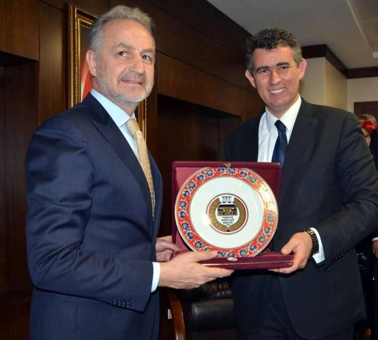Türkiye Barolar Birliği Başkanı Metin Feyzioğlu Hatay’daki gezi ve incelemeleri kapsamında İskenderun Ticaret ve Sanayi Odasını da ziyaret ederek İş adamları ile bölge ve ülke ekonomisi hakkında karşılıklı fikir alış verişinde bulundu. Feyzioğlu’nu İTSO Başkanı Levent Hakkı Yılmaz kapıda karşıladı. Ziyaretten ötürü memnuniyetini dile getiren İTSO Başkanı Levent Hakkı Yılmaz bölge ekonomisi hakkında Feyzioğlu’na bilgiler vererek, İTSO Başkanı Yılmaz, “İTSO olarak bölge ekonomisine katkı sunmanın yanı sıra sanayicimizin ve esnafımızın sorunlarını çözüm bulmaya çalışıyoruz. Odamızda zaman zaman siyasetçileri ve misafirleri ağırladık. Tabi Türkiye Barolar Birliği Başkanımızın bizleri ziyaret etmesi bizim için ayrı bir onur. İskenderun’a her geldiğinde odamızı mutlaka ziyaret etmiştir ve bizleri önemsemiştir. Kendisine teşekkür ediyorum ve Odamıza hoş geldiniz diyorum” dedi. Türkiye Barolar Birliği Başkanı Metin Feyzioğlu, İTSO Yönetim kurulu toplantı salonunda yaptığı konuşmasında, Hatay’ın önemine vurgu yaptı. İskenderun’un sosyal ve ekonomik yönden potansiyeli yüksek bir şehir olduğunu kaydeden Feyzioğlu, Ülkede yapılan yatırımlar ve son yaşanan Rusya krizi konularına da değinerek şöyle konuştu: “2013-2014 yılında doğrudan dış yatırım 13 milyar dolara düştü. 2015’de bir 9 aylık kıpırdanma hesaplarda görüldü. Fakat Rusya krizi ile birlikte bundan da herhalde devamını beklemek gerçekçi olmaz. Ülkeye yabancı yatırımcı gelmiyor. Azaldı. Sıcak paraların ABD bankalarına aktarma ihtimali güçlendi yani büyük bir sermaye sorunu ile hepimiz karşı karşıyayız. Biz emarelere bakıyoruz, dışa verilen belirtilere bakıyoruz onları konuşuyoruz. Topuğu düzeltme zamanı. Ve bu düzeltmeyi de birbirimizi suçlayarak yapamayız. İktidarı, muhalefeti sivil toplum örgütlerini, işçi iş veren camiasını ticaret erbabını, sanayiciyi, avukatı, hakimi, savcıyı düşman ilan ederek, karşı kamplarla ilan ederek biz bu işi çözemeyiz. Ben o elin uzatılmasına bakarım. Ta ki uzatılana kadar. Ben o eli tutarım. Tutmaya hazır olduğumuz da Türkiye’nin üstün menfaatleri, Türk milletinin geleceği için o eli tutmayı da milli bir vazife olarak görürüm.” Ziyarette Türkiye Barolar Birliği Başkanı Metin Feyzioğlu’na İTSO Meclis Başkan vekili Erol Aygen’in İskenderun’a Deniz İhtisas Mahkemeleri Kurulmalı konusu ve Bölge iş adamlarının yabancılara emlak satılması konuları anlatıldı. İTSO Başkanı Levent Hakkı Yılmaz, elindeki dosyayı Türkiye Barolar Birliği Başkanı Metin Feyzioğlu’na takdim etti. Feyzioğlu, TOBB Başkanı Rifat Hisarcıklıoğlu ile görüşeceğini ve son derece önemli olan bu konular ile ilgileneceğini belirterek, İTSO Başkanı Levent Hakkı Yılmaz ve yönetiminin de özverili bir şekilde çalıştığını vurguladı. Ziyaretin anısına İTSO Başkanı Levent Hakkı Yılmaz Feyzioğlu'na fincan takımı hediye ederken, Feyzioğlu'da İTSO Başkanı Yılmaz'a Barolar Birliğinin plaketini sundu.