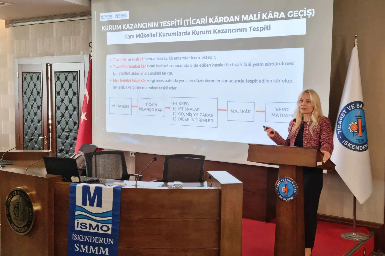 Seminer öncesi konuşma yapan İskenderun Serbest Muhasebeci Mali Müşavirler Odası Başkanı İbrahim Kaynar, “Üyelerimize yönelik eğitim seminerlerimiz ve bilgilendirmelerimiz devam ediyor. 6 Şubat depremi sonrası yapmış oluğumuz mücadele ve girişimlerle üyelerimizin ve mükelleflerimizin hakkını sonuna kadar aradık ve mücadele ettik. Bu mücadeleler sonunda önemli mesafeler de alındı. Bugünkü eğitimimiz de Kurumlar Vergisi hakkında. Konu hakkında değerli eğitmenize vereceği bilgilerden dolayı teşekkür ediyorum ve eğitimizin faydalı geçmesini temenni ediyorum” dedi.