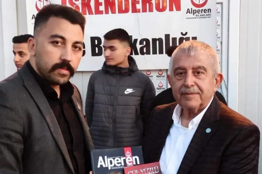 Başkan Uzar Alperen ve Muhsin Yazıcıoğlu ile ilgili dergi hediye ederken İYİ Parti Adayı Ceylan Türk Bayrağı ve Nutuk hediye takdiminde bulundu.