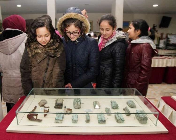 Hatay Büyükşehir Belediyesi(HBB), Kültür ve Sosyal İşler Dairesi Başkanlığı tarafından organize edilen, “Çanakkale 1915, 101’inci Yıl Savaş Malzemeleri Müzesi” adlı sergi, 2 Ocak tarihinde Belen Belediyesi Düğün Salonu’nda ziyaretçilerine kapılarını açtı. Çanakkale Savaşı’nın maneviyatını derinden hissettirmek ve gelecek nesillere milli şuuru kazandırmak amacıyla düzenlenen sergiyi ilçede öğrenim gören çocuklar ve velileri ziyaret etti. ÖĞRENCİLER MİLLİ TARİHLERİNE TANIKLIK ETMENİN GURURUNU YAŞADI Belen Belediyesi Düğün Salonu’nda sergilenmek üzere kısa süreliğine getirtilen, Çanakkale Savaşı’nda kullanılan gerçek silah, top mermisi ve kıyafet gibi çeşitli savaş malzemelerinin bulunduğu sergi, öğrenciler tarafından ilgiyle gezildi. Müze görevlilerinden ve öğretmenlerinden malzemeler hakkında bilgiler de alan minikler, kitaplardan öğrendikleri milli tarihlerindeki kullanılmış olan savaş malzemelerine yakın olmanın gururunu yaşadı. Ecdatlarının Çanakkale savaşında kullandıkları sınırlı savaş malzemelerine yakından tanıklık etme şansı bulan Belenliler, Çanakkale ruhunu yansıtan eşsiz sergiyle buluşmalarına vesile olan Hatay Büyükşehir Belediye Başkanı Doç. Dr. Lütfü Savaş’a teşekkürlerini iletti. Çanakkale Savaşı’nın maneviyatını derinden hissettiren sergi, 8 Ocak 2017 saat 17.00’ye kadar Belen’de ziyaretçilerini bekliyor.