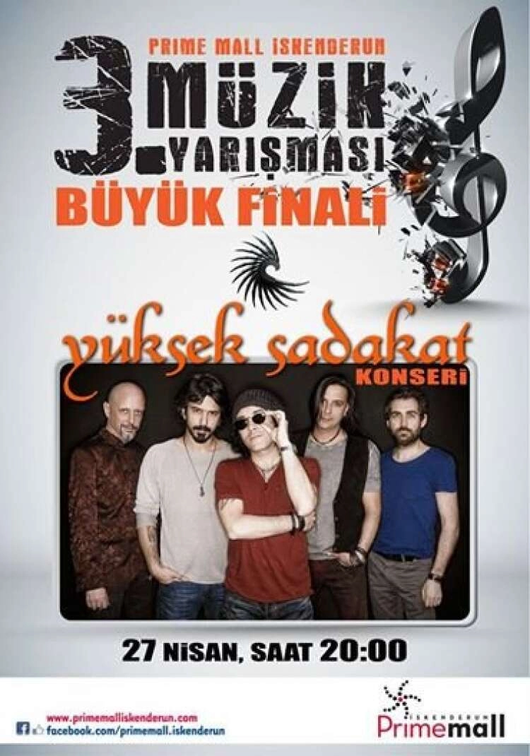 Kentin ilk ve tek yaşam ve alışveriş merkezi Prime Mall İskenderun Alışveriş Merkezi, Geleneksel 3. Müzik Yarışması’nın finaline hazırlanıyor. 27 Nisan Pazar Günü saat 20.00’de gerçekleşecek olan büyük finalde, elemelerden geçen 10 yarışmacı kıyasıya yarışacak. Büyük finalin jüri üyeliğini ünlü rock grubu “Yüksek Sadakat” üyeleri yapacak. Başarılı grup gecenin sonunda muhteşem bir konsere imza atacak. Dereceye giren gruplar ödüllerini Yüksek Sadakat grubunun üyelerinden alacak. Kıyasıya mücadelenin gerçekleşeceği muhteşem finali kaçırmamak için 27 Nisan Pazar Günü Prime Mall İskenderun Alışveriş Merkezi’ndeki yerinizi alın.