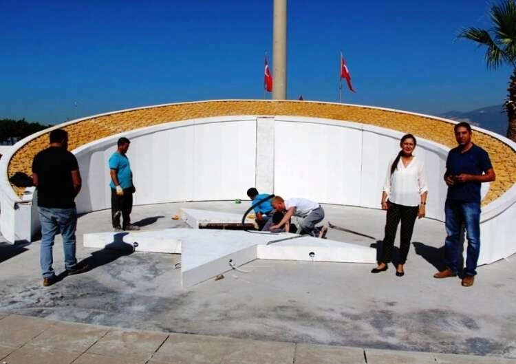 İskenderun Belediye Başkanı Seyfi Dingil, sahil bandına şanlı ay yıldızımızın figürünün yapılmakta olduğunu belirtti. İskenderun Belediyesi Park Bahçe Müdürlüğü Sahil Atatürk Bulvarı üzeri, anıt alanının giriş kısmında bulunan alana ay yıldız figürü yapıyor.