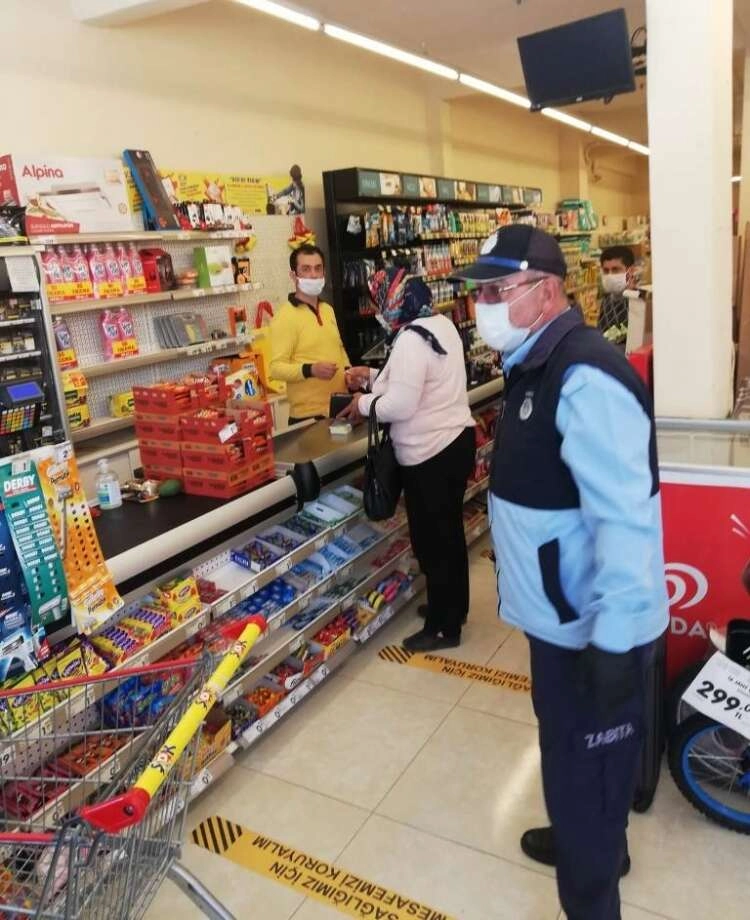 Ayrıca, market denetimleri ile ilgili olarak İl Umumi Hıfzıssıhha Kurulu Kararları gereğince, ilçemizde daha önce denetimlerini yaptığımız marketlerle alakalı şikayet gelmesi üzerine Zabıta Müdürlüğü ekiplerimiz bugün de ilçemiz sınırları içerisinde faaliyet gösteren marketlerde denetimler gerçekleştirerek içeride her bir müşteriye en az 10 m2 alan olacak şekilde içeriye müşteri alınması, kasiyerlerin maskeli ve eldivenli olması ve içerideki meyve ve sebzelerin poşetlenerek satışa sunulması konusunda denetimler gerçekleştirdiler.