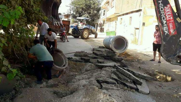 - Tekebaşı Mahallesi’nde büz döşeme çalışması,