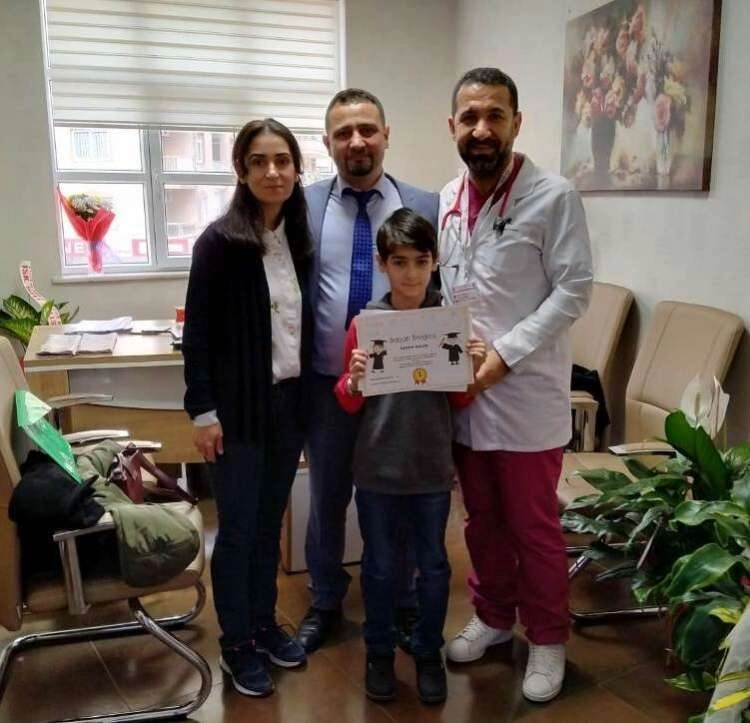 Başhekim Uzm. Dr. Emin Turhan’a gerçekleştirdikleri teşekkür ziyaretinde yaşadıkları süreci anlatan Baba Cengiz Aslan, “Oğlumun şiddetli mide bulantı ve kusması vardı. Bu nedenle Doktor Emin Bey’e başvurduk. Kendisi ilk muayenede, oğlumun beyninde tümör olduğunu tespit etti. Ardından Kerem, hemen operasyona alındı ve kısa sürede iyileşerek okuluna dönebildi. Hatta oğlum bu yıl, en başarılı öğrencilerden seçildi. Bu sevinci yaşayabilmemizi sağlayan Doktorumuz Emin Bey’e çok teşekkür ediyorum. Doktorumuz, bizim hayatımızın akışını değiştirdi” dedi.