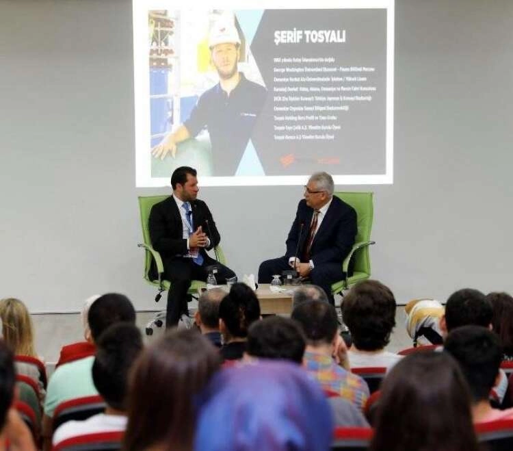 İSTE İskenderun Meslek Yüksekokulu Müdürü Doç. Dr. Selçuk Mıstıkoğlu moderatörlüğünde gerçekleşen söyleşide; Tosyalı Holding İcra Kurulu Üyesi Şerif Tosyalı’nın özgeçmişi, vizyonu ve gençlere vermiş olduğu çarpıcı bilgiler büyük ilgi topladı. Doç. Dr. Selçuk Mıstıkoğlu, söyleşinin başlangıcında; “Aynı zamanda DEİK Türkiye-Japonya İşbirliği Konseyi Başkanı olan Şerif Tosyalı, 2010 yılının başında bir Japon şirketi ile Osmaniye Organize Sanayi Bölgesinde yatırım yapmak üzere görüşmelere başladı. Geçen yıl yatırımını tamamlayarak meyvelerini toplamış oldu. Tosyalı Holding’in dünyada çelik endüstrisinde söz sahibi olmasında önemli roller oynadı. Bu sebepten dolayı da Türkiye-Japonya İşbirliği Konsey Başkanlığı görevi kendisine verilmiştir. Şerif Tosyalı genç, başarılı ve gelecek vaat eden bir girişimcidir, aynı zamanda Osmaniye Organize Sanayi Bölgesi’nin de yönetim kurulu başkanıdır. Yaptığı çalışmalar ile Tosyalı Holding’in kısa sürede hem Türkiye hem de dünya genelinde geliştirilmesinde ve tanıtılmasında büyük katkı sağlamıştır. Ayrıca dinamizmi ile sektöründe kısa süre içinde kendini tanıttı ve bu sayede herkes tarafından takibe alının bir iş insanı haline geldi” diyerek söyleşiyi başlattı.