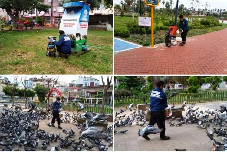 Belediye Başkanı Fatih Tosyalı," Sokakta yaşayan kedi ve köpeklerimizin yanı sıra, güvercinlerimize de çevre müdürlüğü ekiplerimiz mama, su ve yemlerini veriyor. Çünkü sokağa çıkma yasağı nedeniyle bu canlar beslenme sıkıntısı yaşayabiliyor. İskenderun Belediyesi olarak, bölgemizde yaşayan sokak hayvanlarının yanındayız. Çünkü onlar da birer can taşıyor. Bu canların da beslenmesi ve sularını alması gerekiyor ki mutlu olsunlar. Sokağa çıkma yasağının uygulandığı bugünlerde onların da yanında yer almaya, ihtiyaçlarını karşılamaya devam edeceğiz" dedi.
