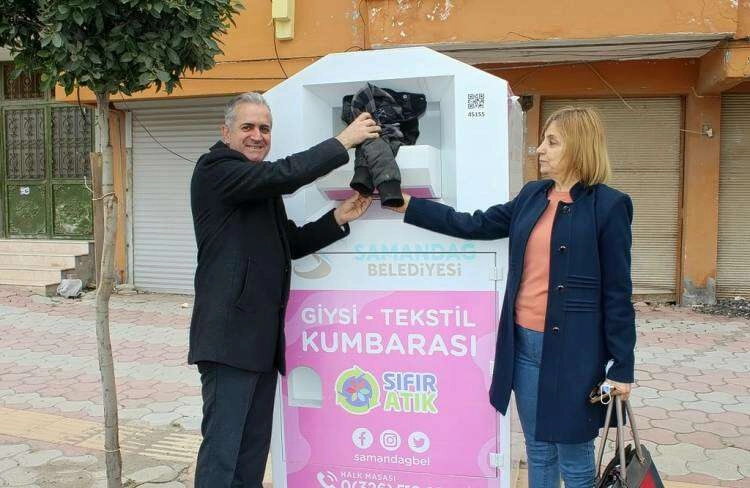Samandağ Belediye Başkan Yardımcısı Tahsin Demir yaptığı açıklamada; “ Geçtiğimiz ay geri dönüşüm firması ile bir protokol yapmıştık. Çok kısa bir sürede protokolün gereğini yerine getirdiler. Tekstil Atıkları Geri Dönüşüm Kumbaralarımızı Samandağımızın birçok bölgesine yerleştiriyoruz. İçerisine çöpe atılmaması gereken; giysi, eski ayakkabı, kemer, çanta vb. birçok tekstil ürününü atabileceğiz. Böylelikle hem bu ürünleri çöplerimizden arındırmış olacağız hem de geri dönüştürerek ekonomimize kazandıracağız.