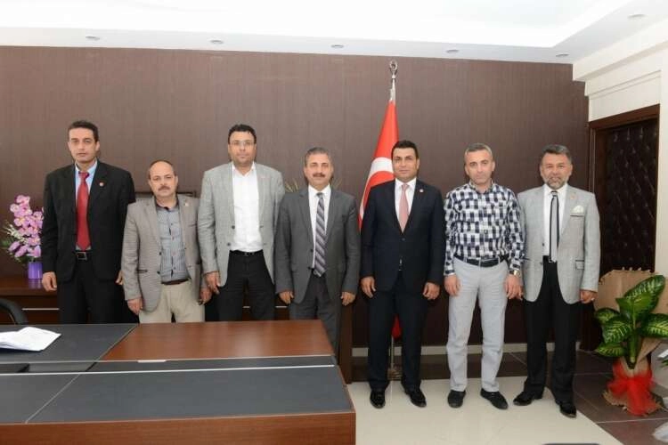 Antakya Belediye Başkanı Mimar İsmail Kimyeci, TÜMSİAD Hatay Şube Başkanı Av.Hasan Ertürk ve yönetim kurulu üyelerini konuk etti. TÜMSİAD Hatay Şube Başkanı Av.Hasan Ertürk ve yönetimi, Antakya Belediye Başkanı Mimar İsmail Kimyeci’ye yeni görevinde başarılar diledi. Ziyarette Şube Başkanı Av.Hasan Ertürk, TÜMSİAD hakkında geniş kapsamlı bilgi verdi ve fikir alış verişinde bulundu. TÜMSİAD Şube Başkanı Av.Hasan Ertürk, ekonomin belkemiğini KOBİ’lerin oluşturduğunu belirterek, “Bazı ihtiyaçları karşılamak üzere TÜMSİAD kuruldu. KOBİ’lere eğitimler, konferanslar düzenliyoruz. Yurt içi ve yurt dışında yeni pazarlar bulunması konusunda öncülük yapıyoruz” dedi. Antakya Belediye Başkanı Mimar İsmail Kimyeci, yapılan ziyaretten dolayı duyduğu memnuniyeti ifade ederek, “Gerçekten Türkiye’mizin son 12 yılda yapmış olduğu ilerleme, sanayi ve ekonomik açıdan kat ettiği gelişme gözle görülmektedir. Küçük ve orta ölçekli işletmelerin teknolojik alt yapı desteği ile katma değeri yüksek ürünleri üreten güçlü bir Türkiye olma konusunda çok önemli mesafeler kat edildi. Tabi bütün bu gelişmeleri elde ederken sivil toplum kuruluşlarımızın, derneklerimizin ve TÜMSİAD gibi kuruluşların yapmış olduğu faaliyetler önemli. Ülkemizin, dünya’da hak ettiği noktaya gelmesinde büyük fedakârlıklar, çalışmalar sergilemişsiniz. Küçük ve orta ölçekli esnafımızın gelişmesi konusunda büyük emek ve mesai harcamışsınız. Küçük ve orta ölçekli işletmelerin sadece gördükleri ile değil, ufuklarını açarak dünya’yı gören ve bu anlamda bilgi ve becerilerini geliştirip fazla üretim yaparak başta ilçemize, ilimize ve Türkiye’mize değerler katmasına vesile olduğunuzdan dolayı sizlere teşekkür ediyorum. Bundan sonraki çalışmalarınızda bizler sizlere katkı anlamında yapabileceğimiz her türlü hizmete hazırız. Bölgenin kalkınması için proje üreten sivil toplum kuruluşlarının daima yanında olacağız” şeklinde konuştu. Ziyaretin sonunda Antakya Belediye Başkanı Mimar İsmail Kimyeci, konuk heyet ile günün anısına hatıra fotoğrafı çekildi.