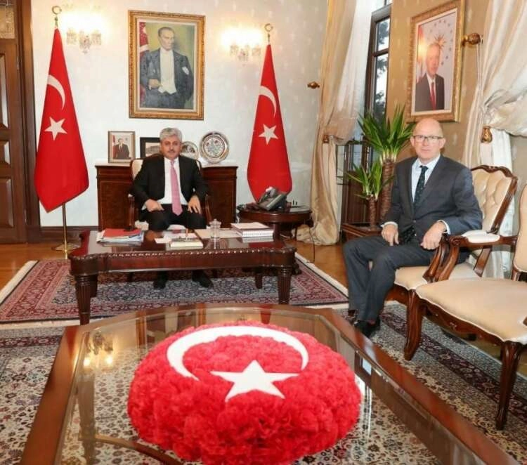 Hatay Valisi Rahmi Doğan, İngiltere Büyükelçisi Dominick Cihillcott ve beraberindeki heyeti makamında kabul etti.