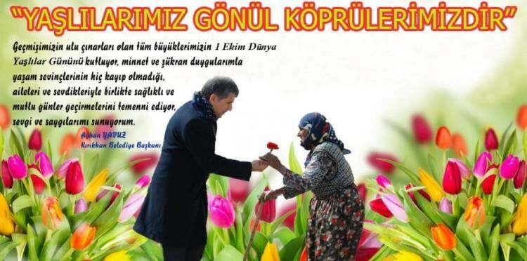 Bu duygu ve düşüncelerimle, bugünlerimizin mimarı, gönül köprülerimiz olan saygıdeğer büyüklerimizin”1 Ekim Dünya Yaşlılar Gününü en kalbi duygularımla kutlar, yaşam sevinçlerinin hiç kaybolmadığı sağlıklı ve mutlu günler temennisiyle sevgi ve saygılarımı sunarım.” Dedi.