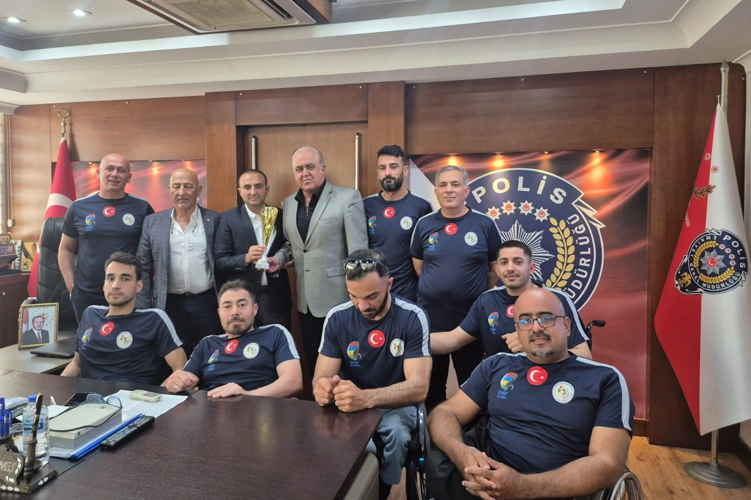 Şampiyonanın ardından kente dönen Tosyalı İskenderun Engelliler Basketbol takımı kulüp Başkanı Suat Atasever ile sporcular, İskenderun Emniyet Müdürü Nevzat Güneş'i ziyaret ettiler.