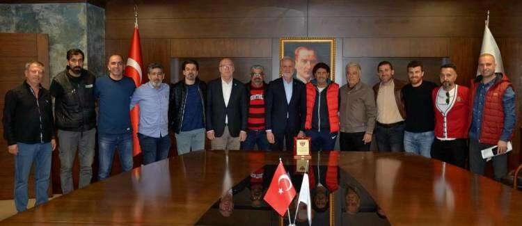 İskenderunspor’a uzun yıllar hizmet etmiş, futbol oynamış ve bu camiaya değer katmış olan şehrimizin güzide sporcuları ile kurulan İskenderun Veteranlar Spor Kulübü Başkanı Hıdır Özdemir, Yönetim Kurulu adına İTSO Başkanı Levent Hakkı Yılmaz’a İskenderunspor’a ve derneğe katkılarından dolayı plaket taktim etti.