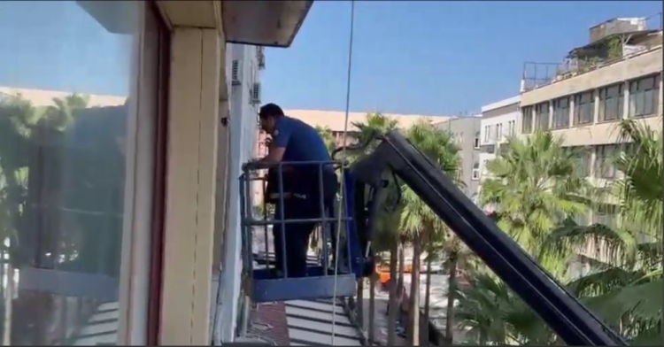 Kapıyı içeriden kilitliyerek, tüm uyarılara rağmen kapıyı açmayan şahıs Belediye BOM (vinç) aracıyla birlikte yapılan operasyonla yakalandı.