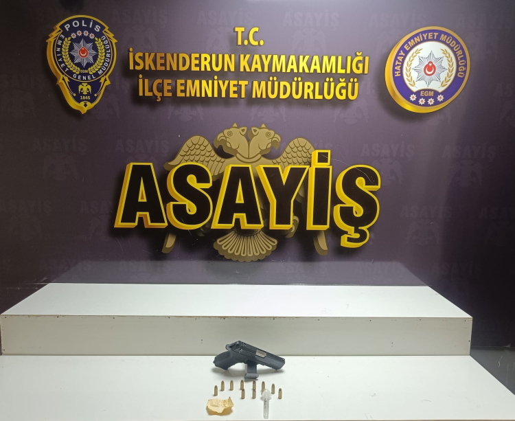 Ayrıca M.K.’nın ikametinde yapılan aramada; 1 Adet Ruhsatsız Tabanca, 10 adet Fişek, 3 gr Metamfetamin Uyuşturucu Maddesi 1 adet Payp(uyuşturucu kullanmadaki aparat) ele geçirildi.