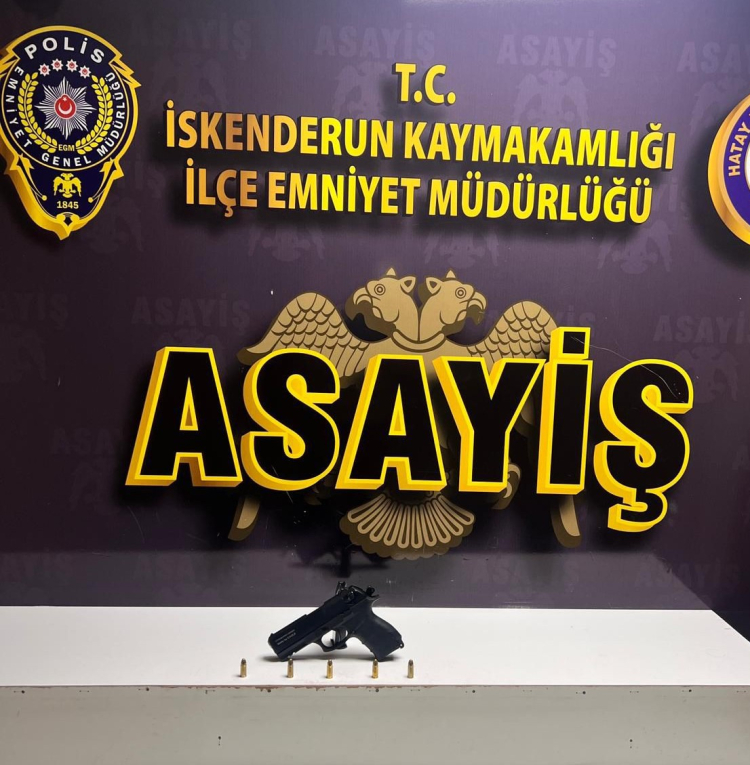Şüphelilerin adresinde yapılan aramada ; 1 adet ruhsatsız tabanca ve 5 adet fişek ele geçirildi.