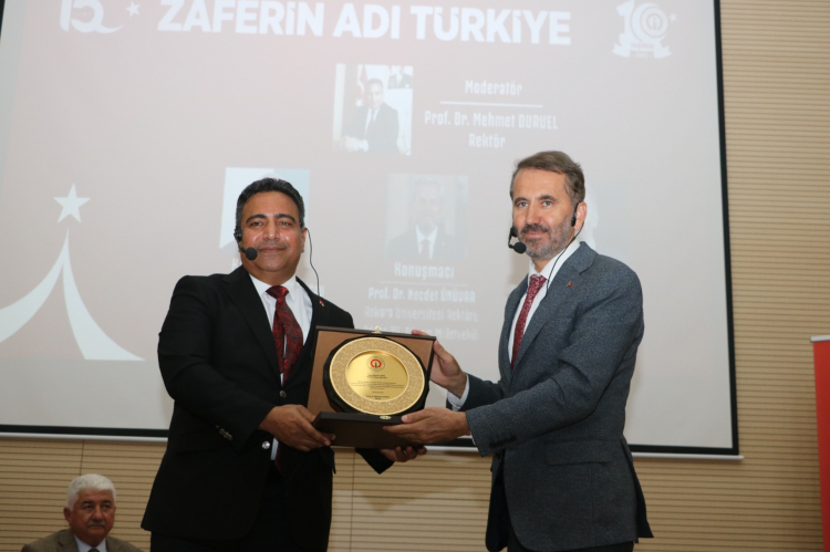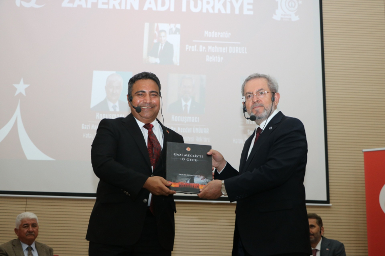 Etkinlikte açılış konuşmasını yapan Rektör Prof. Dr. Mehmet DURUEL, 15 Temmuz’un milletin demokrasiye olan inancının en güçlü şekilde ortaya konduğu bir direniş destanı olduğunu vurguladı. Panelin, bu tarihi gecenin hafızalarda taze tutulması ve gelecek nesillere aktarılması açısından büyük önem taşıdığını belirtti. Rektör Prof. Dr. DURUEL’in moderatörlüğünü üstlendiği panelde, hain darbe girişiminin tanıkları arasında yer alan Ankara Üniversitesi Rektörü Prof. Dr. Necdet ÜNÜVAR, 15 Temmuz gecesi yaşadıklarını anlatarak kendi hazırladığı “Gazi Meclis’te O Gece” kitabından bir sunum yaptı. Hatay Milletvekilleri Serkan TOPAL ve Gazi Hacı Bayram TÜRKOĞLU da o geceye dair tanıklıklarını ve duygularını paylaştı. Programın sonunda Rektör DURUEL, konuşmacılara bu anlamlı etkinliğe vermiş oldukları katkılardan dolayı teşekkür etti ve hediye takdiminde bulundu.