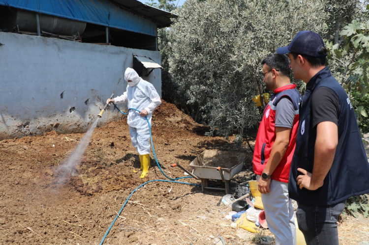 Tarımsal Hizmetler Dairesi ilaçlama ekipleri çalışma kapsamında; Erzin, Dörtyol, Arsuz ve Samandağ başta olmak üzere il genelinde, Akdeniz Meyve Sineğinin üreme noktalarında, hayvan gübresi bulunan alanlar başta olmak üzere sineğin tüm üreme ve konaklama alanlarında ilaçlama çalışmaları gerçekleştiriyor.