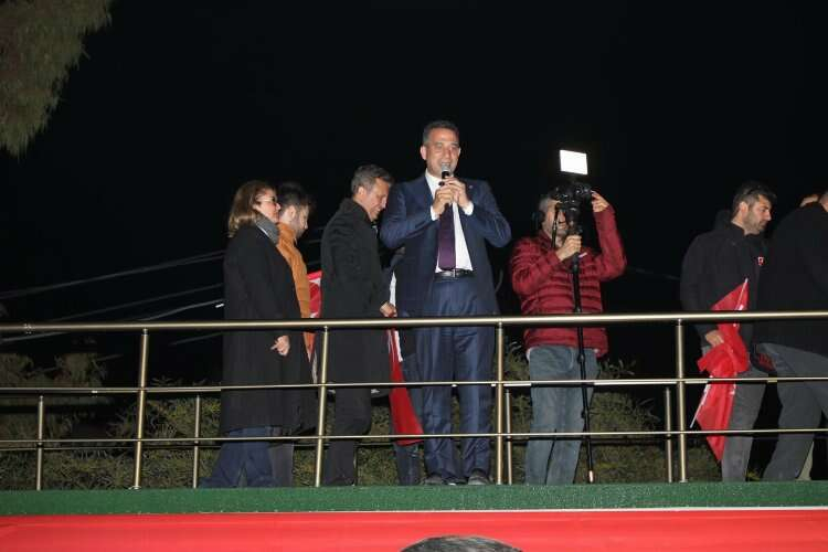 Mersin Milletvekili olarak seçildikten sonra Hatay'a defalarca ziyarette bulunduğunu belirten Ali Başarır, “Hatalarımız olabilir, eksiklerimiz olabilir ama asla sizlere ihanet etmedik. Oy verenle vermeyeni ayırmadık. Cumhurbaşkanı, deprem bölgesinde 1 yıl içerisinde toplamda 319 bin konut teslim edecekti ama bunun yaklaşık yüzde 25’i olan 76 bin tanesini teslim etti. 90 bin tane konutu yıkılan Hatay’a 3 bin tane konut teslim etti. Hatay’ın ne günahı var? Hatay kendisine oy vermediği için hizmet yapmamış. Hatay sana oy vermeyecek. Bizler depremde evlere girdik, çocuklara sarıldık; cenazesi olan insanla oturduk, ağladık. Bunları selfi çekerek sosyal medyada paylaşmadık. Gözyaşlarımızı TV kanallarının kamaralarına sıçratmadık. Bizler, bu topraklar üzerinde yaşayan insanların acıları üzerinden siyasi pazarlıklar yapıp 3 mü olsun 5 mi olsun demedik. Biz Hatay halının duygularıyla oynanmasına artık izin vermeyeceğiz. Hatay’ı zan altında bırakmadık. Hatay’ın her işinin ve acısının takipçisi olacağız. Söz veriyorum size Sizleri yalnız bırakmayacağız. Depremden önce de buradaydık, depremde de bu topraklardaydık ve biz bu seçimden sonra da buraya geleceğiz ve Hatay’ı sokak sokak, mahalle mahalle takip edeceğiz.” dedi.