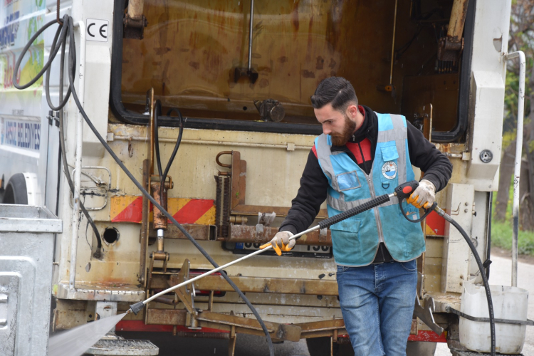 Yeni uygulama kapsamında, çöp konteynerleri çöplerin toplanmasının ardından özel donanımlı araçlarla yerinde yıkanıyor. Konteynerlerin iç yüzeyi ilaçlı suyla dezenfekte edilirken, dış yüzeyleri de tazyikli ve ilaçlı suyla temizleniyor. Bu sayede kötü koku oluşumunun önüne geçilirken, sivrisinek ve karasinek gibi haşerelere karşı da etkin bir mücadele yürütülüyor.
