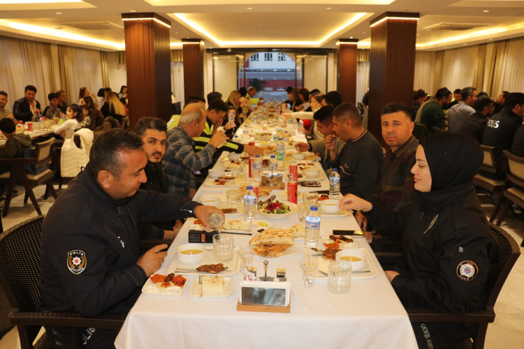 Emniyet Müdürü Hasan Gün ve Dernek Başkanı Mehmet Altun, iftar yemeğine katılan tüm personele çalışmalarında gösterdikleri özveri ve halkla bütünleşen çalışmalarından dolayı teşekkür ettiler..