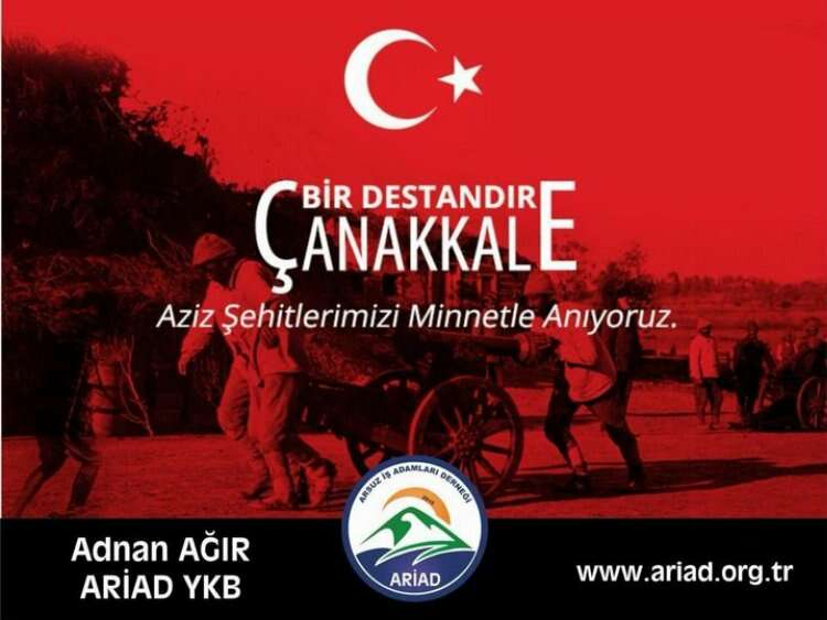 Arsuz İş İnsanları Derneği (ARİAD)Yönetim Kurulu Başkanı Adnan Ağır, 18 Mart Şehitleri Anma Günü ve Çanakkale Zaferi’nin 109. yılı dolayısıyla mesaj yayımladı.
