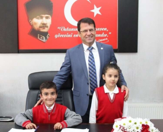 Samandağ Belediye Başkanı Av. Refik Eryılmaz, 23 Nisan Ulusal Egemenlik ve Çocuk Bayramı etkinlikleri kapsamında Belediye Başkanlık makamını, Mızraklı Kenan Ahmet Öztürk İlkokulu 2/D sınıfı öğrencisi Güneş Ramazan’a temsili olarak devretti.
