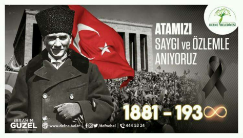 Defne Belediye Başkanı İbrahim Güzel, Türkiye Cumhuriyeti’nin kurucusu Gazi Mustafa Kemal Atatürk’ün ebediyete intikalinin 84. yıl dönümü münasebetiyle bir mesaj yayımladı.