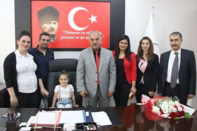 Başkan Nehir, Samandağ Belediyesi Kreş ve Gündüz Bakımevi öğrencisi İklim Göbelek, ailesini ve öğretmenlerini makamında ağırladı.