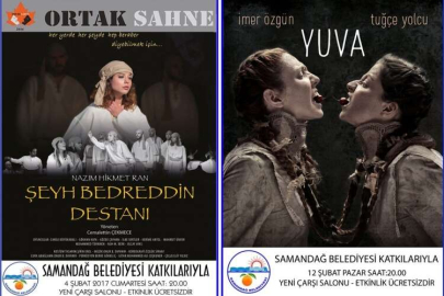 Şeh Bedrettin Destanı adlı tiyatro oyunu 4 Şubat 2017 Cumartesi, Yuva Adlı Tiyatro oyunu 12 Şubat 2017 Pazar günü Samandağ Belediyesi Yeni Çarşı Salonunda saat 20.00’de gerçekleştirileceği bildirildi.