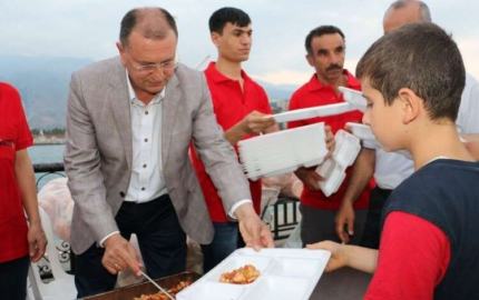 İskenderun Belediye Başkanı Seyfi Dingil ve Arsuz Belediye Başkanı Nazım Culha ile birlikte iftar vakti İskenderunlu hemşehrileriyle Anıt Alanı’nda büyük bir sevgi eşliğinde buluşan Başkan Savaş, vatandaşları selamladıktan sonra kazanların başına geçerek halka kepçe kepçe yemek dağıttı.