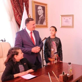 23 Nisan’ın tüm dünya çocuklarına barış,huzur mutluluk getirmesini dileyen Meryem Çolak, kendilerini makamında ağırlayan Başkan Savaş’a tüm dünya çocukları adına teşekkür etti.