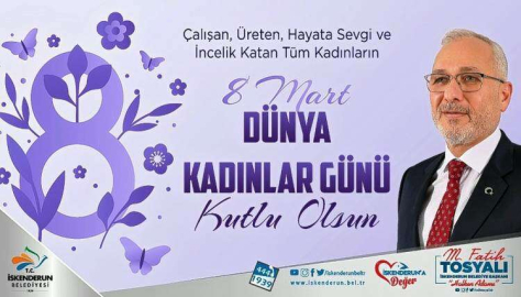 İskenderun Belediye Başkanı Fatih Tosyalı, 8 Mart Dünya Kadınlar Günü dolayısıyla mesaj yayımladı.