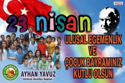Kırıkhan Belediye Başkanı Ayhan YAVUZ, 23 Nisan Milli Egemenlik ve Çocuk Bayramının 98.yıl dönümü münasebetiyle kutlama mesajı yayınladı.