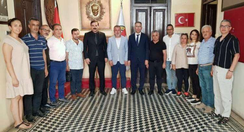 İskenderun Cumhuriyet Başsavcısı Muhammet Emin Ünalan ile Adalet komisyonu Başkanı Mahir Taştimur, İskenderun Gazeteciler cemiyetini ziyaret ederek burada gazetecilerle sohbet etti.
