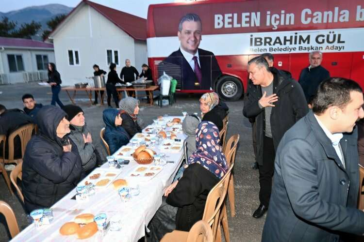 Belen Belediye Başkanı ve Belen Cumhur İttifakı Belediye Başkan Adayı İbrahim Gül, depremzedeler için duyarlı bir adım atarak iftar programı düzenledi. Şehrin birçok noktasında etkisini gösteren deprem sonrasında evsiz kalan ve zor zamanlar geçiren Şekere Ormankent Konteyner’de ikamet eden vatandaşlar için düzenlediği iftar programı, şehrin dayanışma ruhunu bir kez daha ortaya koydu.