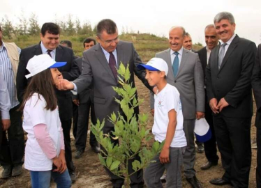 Konuşmaların ardından Vali Lekesiz ve beraberindekiler 10 dönümlük alanda 400 fidanı toprakla buluşturdular.