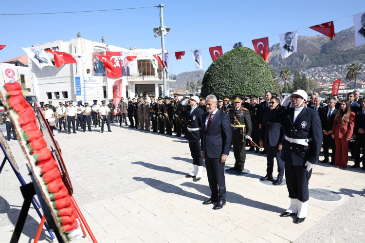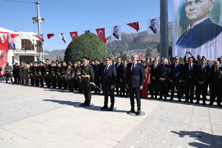 Gazi Mustafa Kemal Atatürk ve tüm şehitlerin aziz hatırası için saygı duruşu ve İstiklal Marşı’nın okunmasının ardından Hatay Valisi Masatlı, 29 Ekim Cumhuriyet Bayramı mesajını okudu.