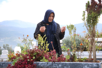 Anne Gözüküçük, daha sonra oğlunun, İskenderun Çankaya Mezarlığı'ndaki mezarı başında 10 Ocak Çalışan Gazeteciler Günü'nü kutladı, dua etti.