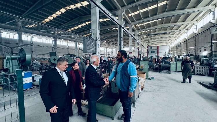 İskenderun OSB de demir çelik sektöründe faaliyet gösteren firmaları ziyaret eden CHP İskenderun Belediye Başkan Adayı Av. Mehmet Duduoğlu öğlenden önce Arsuz Karahüseyinli de faaliyet gösteren iki fabrikayı ziyaret ederek işletme sahipleri ve işçilerle buluştu.