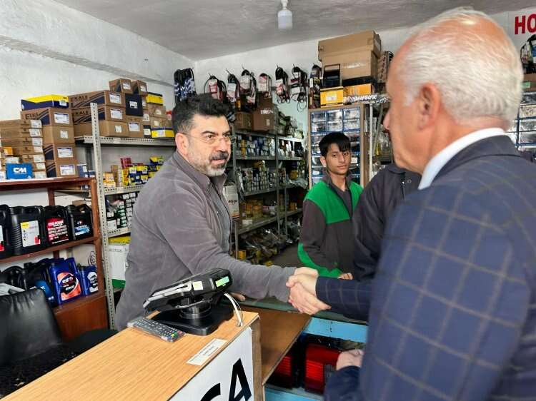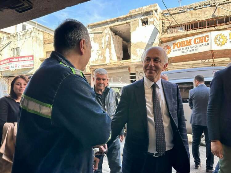 HATSU çalışanlarını ziyaret ederek onları dinleyen Mehmet Duduoğlu, akabinde Sanayi Esnafıyla birebir görüşmeler yaparak hal hatır sordu ve esnafın beklentilerini dinledi.