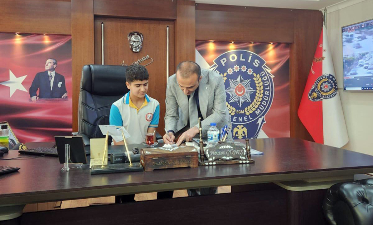 Emniyet Müdürü Güneş, koltuğunu temsili olarak ortaokul öğrencisine devretti