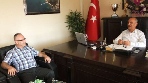Flash Gazetesi İmtiyaz sahibi Murat Tat, Arsuz Belediye Başkanı Nazım Culha'ya makamında nezaket ziyaretinde bulundu.