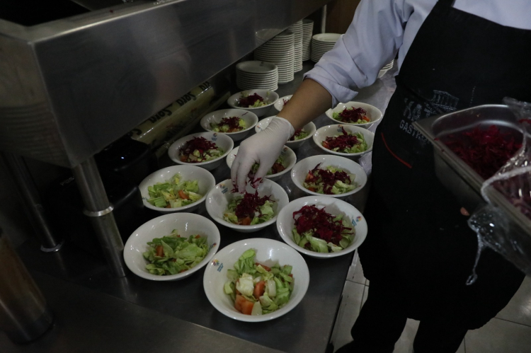 Birbirinden lezzetli onlarca çeşit yemek ve güler yüzlü personelleriyle misafirlerini ağırlayan Gastronomievi’nin iftar menüsünde günlük ortalama 20 çeşit yemek bulunuyor.