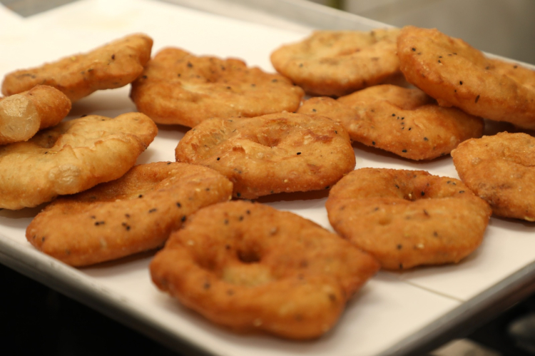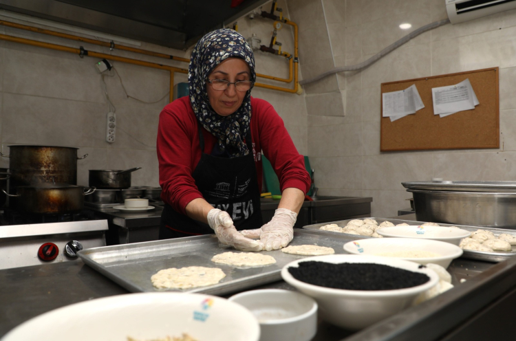 Gastronomievinde “Ras El Seni” gününe özel düzenlenen etkinlikte yöresel adıyla “zleybi” olarak bilinen baharatlı yağlı ekmek yapılıp davetlilere ikram edildi.
