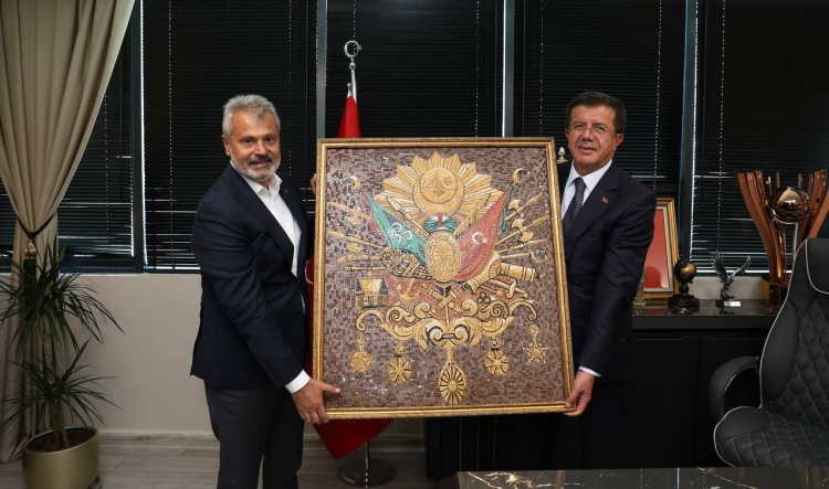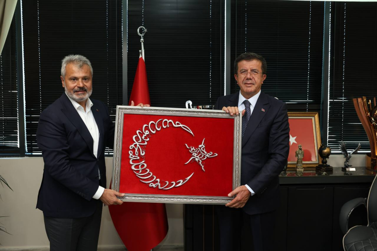 HBB Başkanı Mehmet Öntürk’ün makamında gerçekleşen ziyarette Genel Başkan Yardımcısı ve Ekonomi İşleri Başkanı Zeybekçi’ye Tarım Bakan Yardımcısı Prof. Dr. Ahmet Gümen, Bakan Danışmanı Zehra Eren, Çalışma ve Sosyal Güvenlik Bakan Yardımcısı Adnan Ertem, Sanayi ve Teknoloji Bakan Yardımcısı Çetin Ali Dönmez, Ticaret Bakan Yardımcısı Sezai Uçarmak, Hazine ve Maliye Bakanlığı Gelir İdaresi Başkanı Bekir Bayraktar ve AK Parti Hatay İl Başkanı Mustafa Erdoğan eşlik etti.
