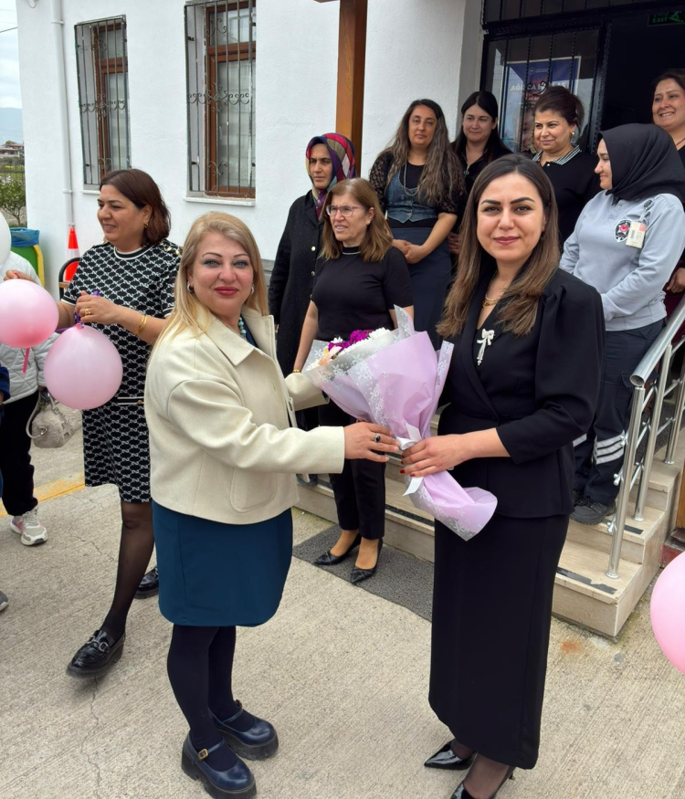 Merkezin kurucu müdürü Tuğba Kara, öğretmenler ve öğrenciler ile birlikte Arsuz İlçe Sağlık Müdürü Uzm. Dr. Buket Karaca’yı ziyaret ederek hem 8 Mart Dünya Kadınlar Gününü kutladılar hem de karanfil takdiminde bulundular.