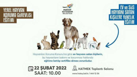 HBB, ev ve süs hayvanı satan kişiler ile yerel hayvan koruma görevlisi olmak isteyenler için aynı günde iki farklı eğitim verecek. Eğitimler 22 Şubat Salı günü saat 10.00’da Antakya HATMEK toplantı salonunda yapılacak.