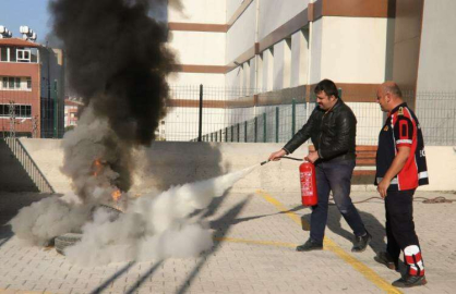 Eğitimin sonunda yangın tatbikatı yapıldı. Tatbikatta yangına doğru müdahalenin ve yangın tüplerinin nasıl kullanılacağı personellere uygulamalı olarak gösterildi.